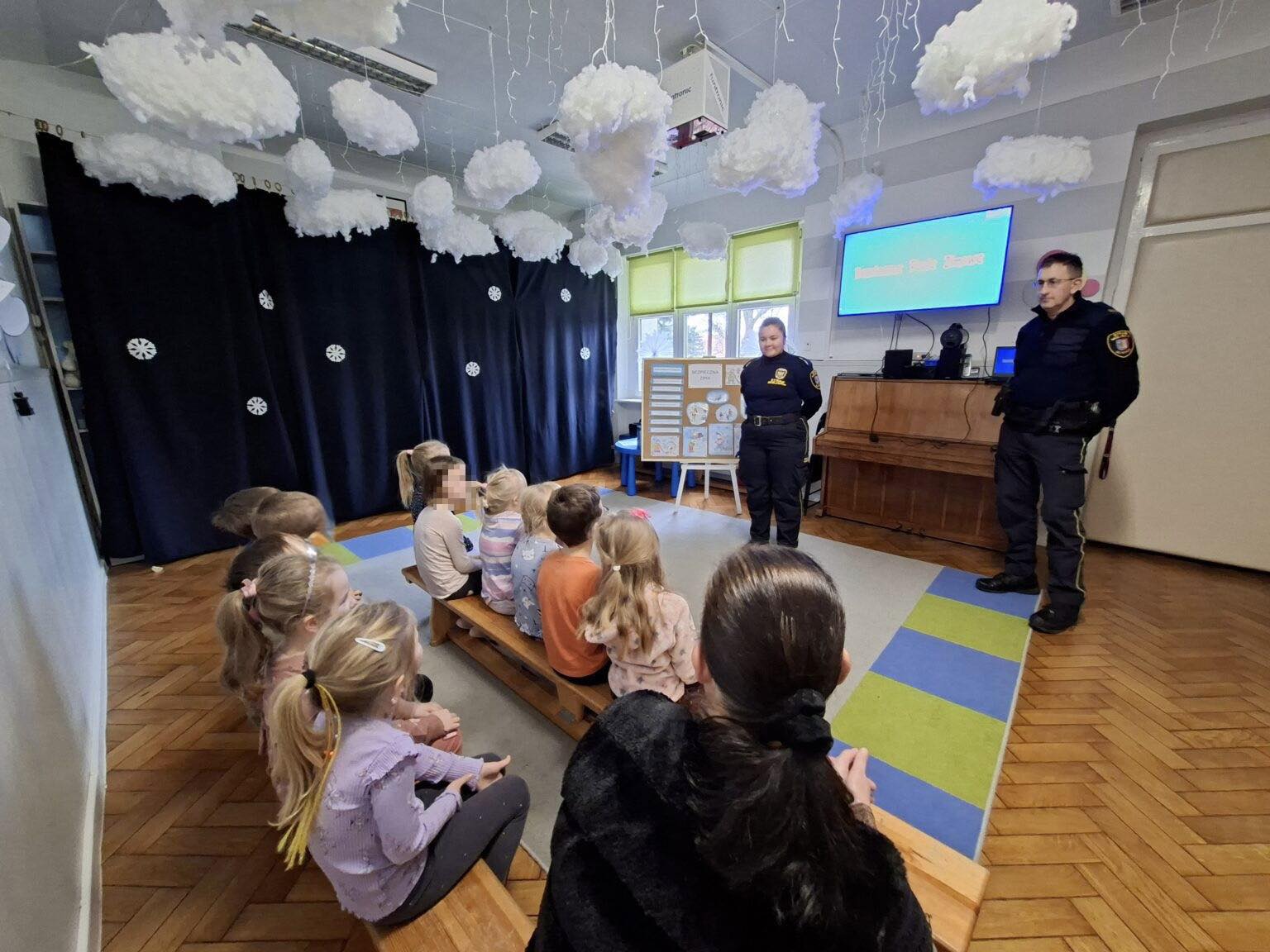 Podczas spotkań przypominamy, gdzie można bezpiecznie jeździć na sankach, dlaczego lód na zbiornikach wodnych bywa niebezpieczny oraz jak zadbać o siebie i kolegów podczas zimowego wypoczynku.
